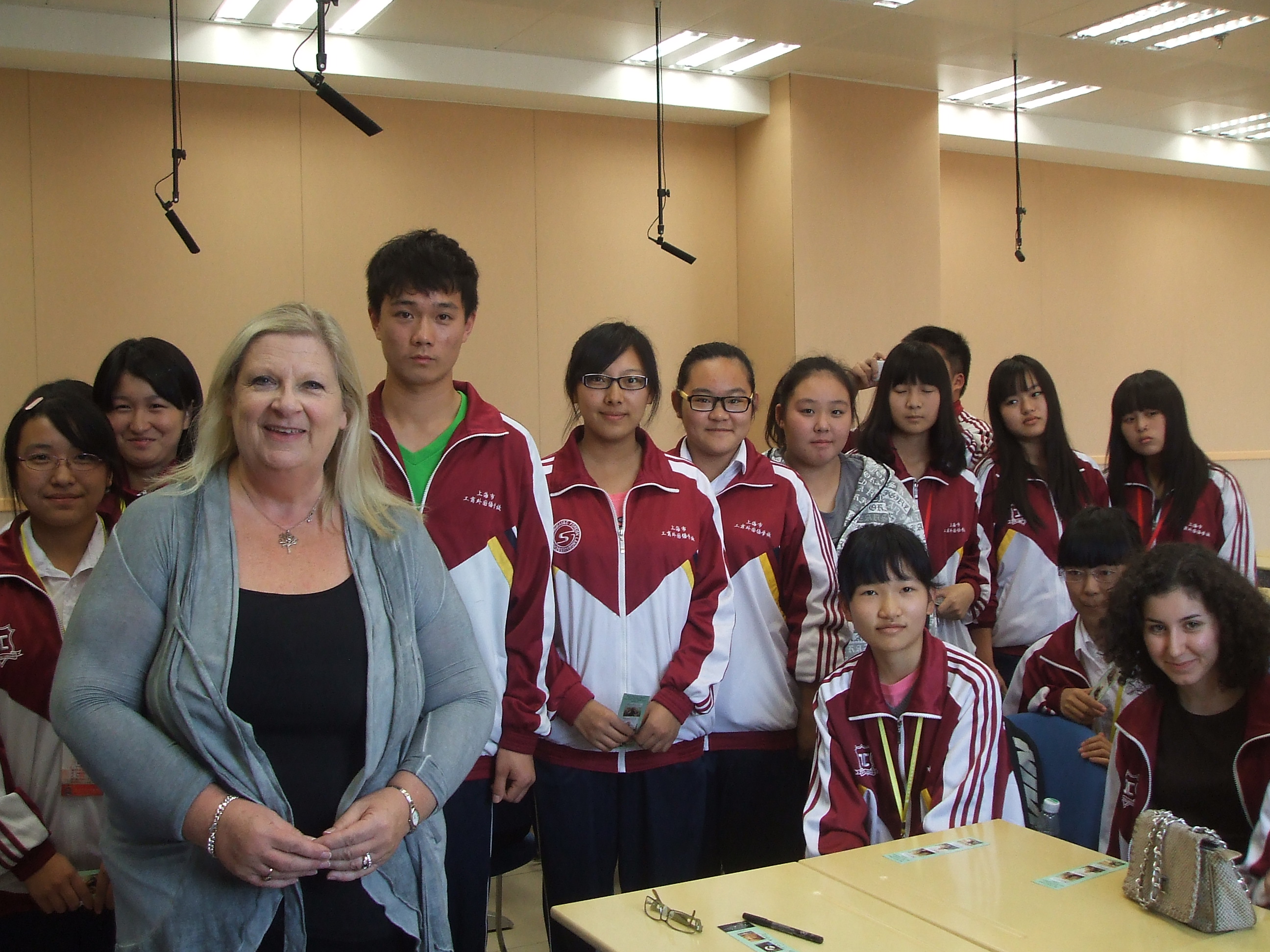 DSCF3334 Published 22/11/2013 at 2592 × 1944 in Wonderful Shanghai Book Fair Next → With some students from Shanghai’s Industrial and Commercial School
