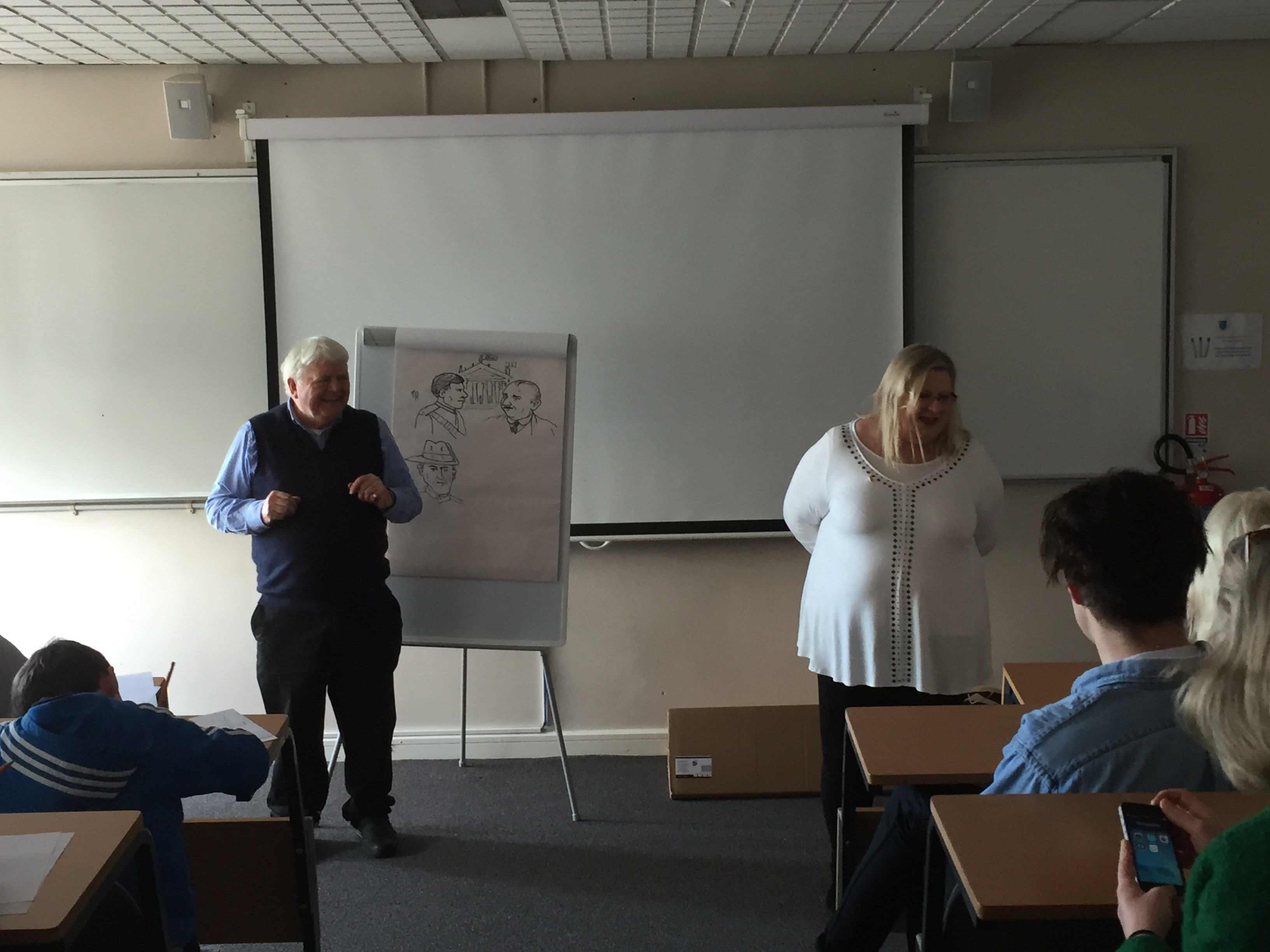 Marita and Don Conroy giving workshop in DIT Aungier Street Published 03/04/2016 at 3264 × 2448 in Easter 1916-2016 ← Previous Next → Marita and Don Conroy giving workshop in DIT Aungier Street